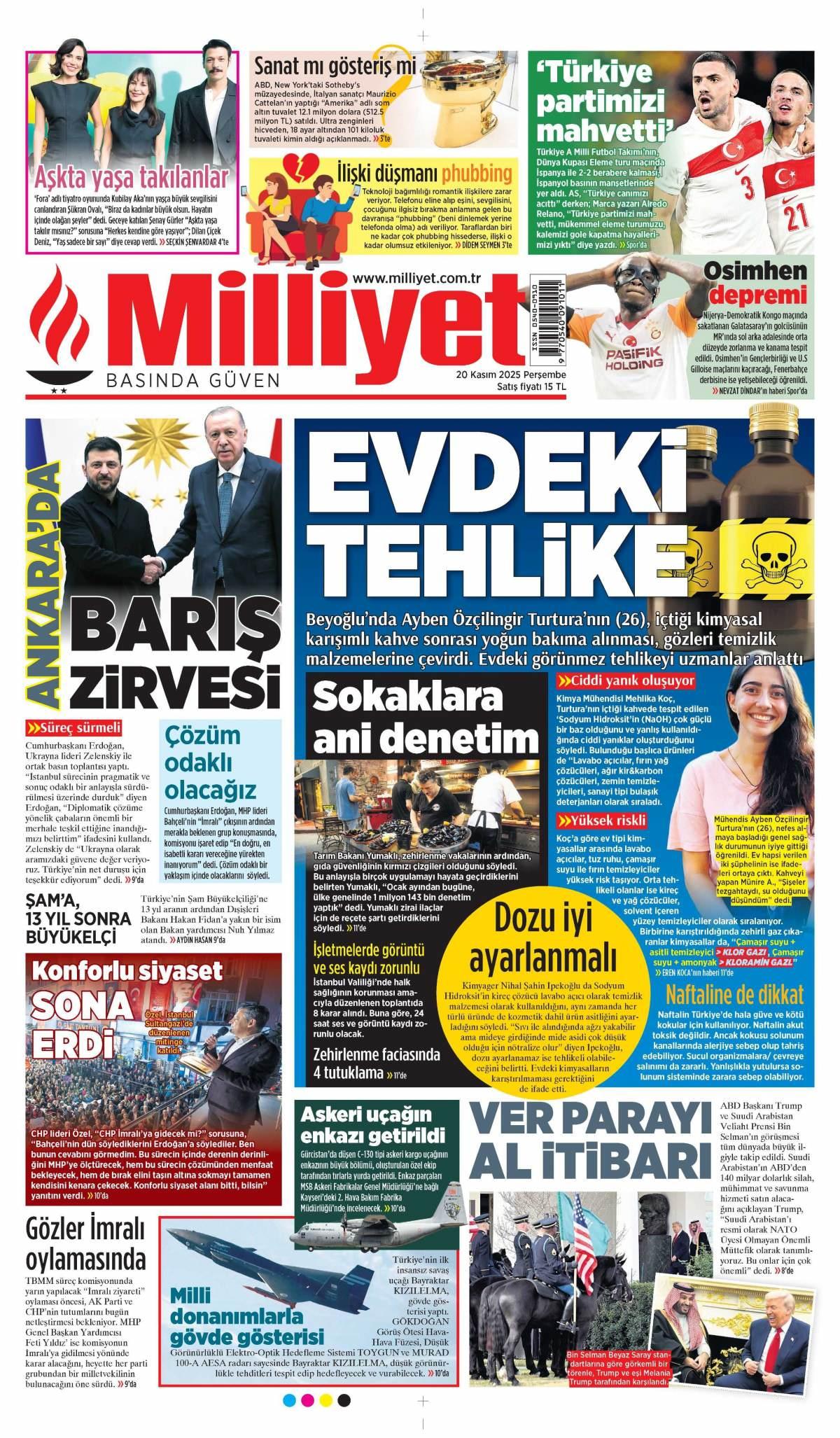 Milliyet Gazetesi 20 Kasım 2025 Günü Manşeti